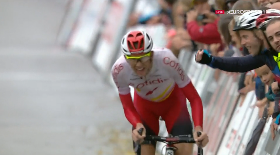 Mathieu van der Poel trató de sorprender desde lejos y con más de 50 kilómetros por delante cerró, con asombrosa facilidad, un hueco de 45 segundos que separaba a los fugados del pelotón. La presencia del neerlandés despertó al gran grupo, que echó abajo la fuga, pero que fue incapaz de mantener el control de la prueba en los kilómetros finales, algo que aprovechó Claeys para entrar en meta en solitario con una ventaja mínima sobre sus perseguidores.