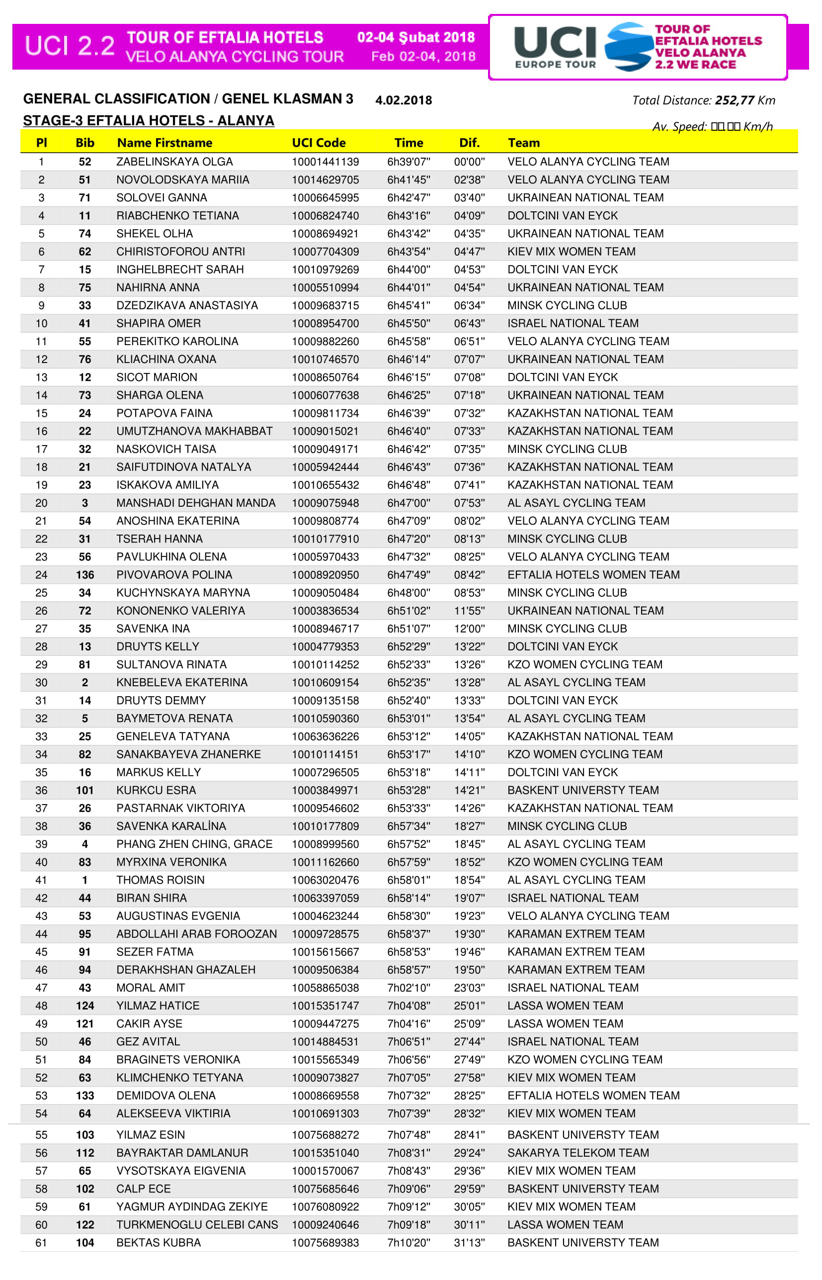 3ª etapa: Jolien D’HOORE (BEL) 29 Sandra ALONSO (4) / General: Leah KIRCHMANN (CAN) 39 Mavi GARCÍA