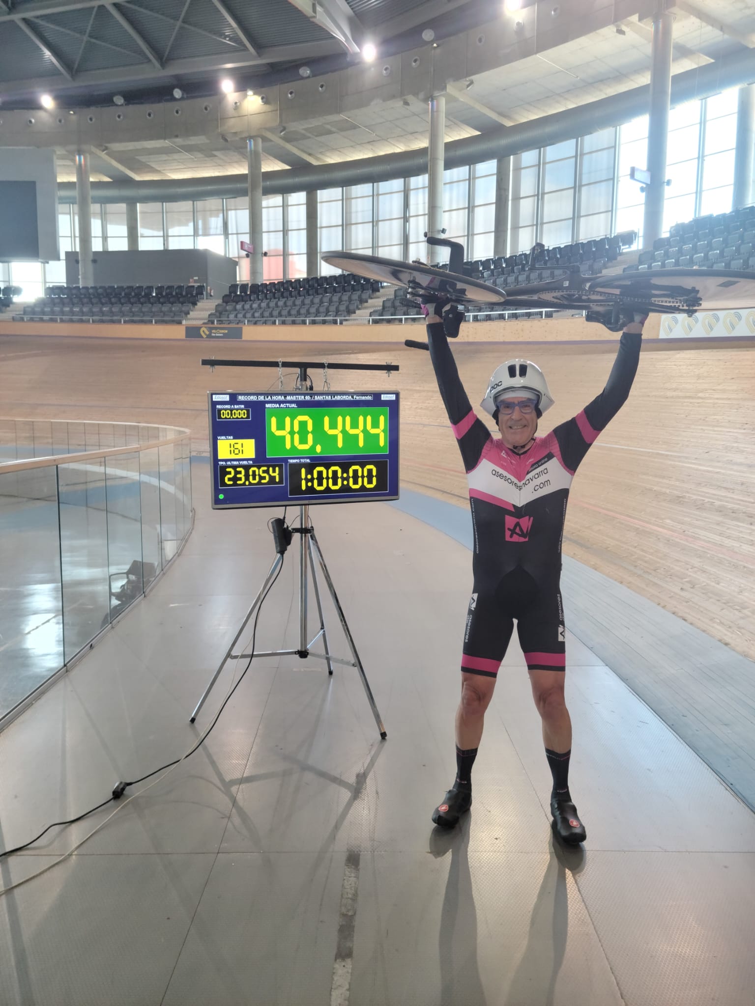 Fernando Santas Laborda, padre del paraciclista navarro-aragonés Eduardo Santas, establecía ayer en el velódromo Illes Balears un nuevo récord de la hora en la categoría de master 60, con una distancia de 40.444 metros.