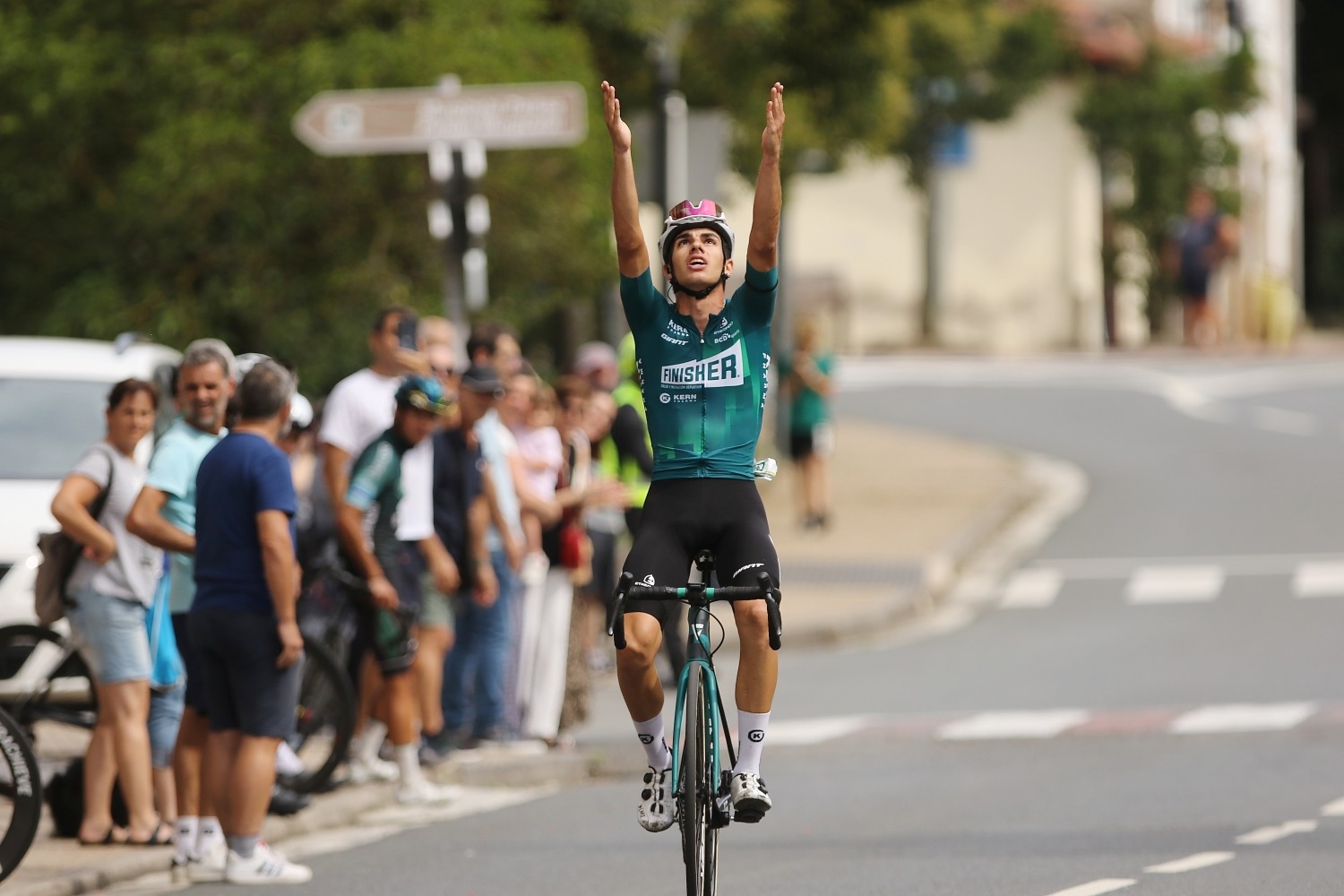 Pues como el Equipo Kern Pharma hace un par de días en La Vuelta a España con el triunfo de Pablo Castrillo, el Equipo Finisher también eligió una victoria como el modo ideal de rendir homenaje a la figura de Manolo Azcona. En la prueba del Torneo Lehendakari en Zegama, Pablo Carrascosa alzó los brazos como vencedor por segunda vez en la última semana.