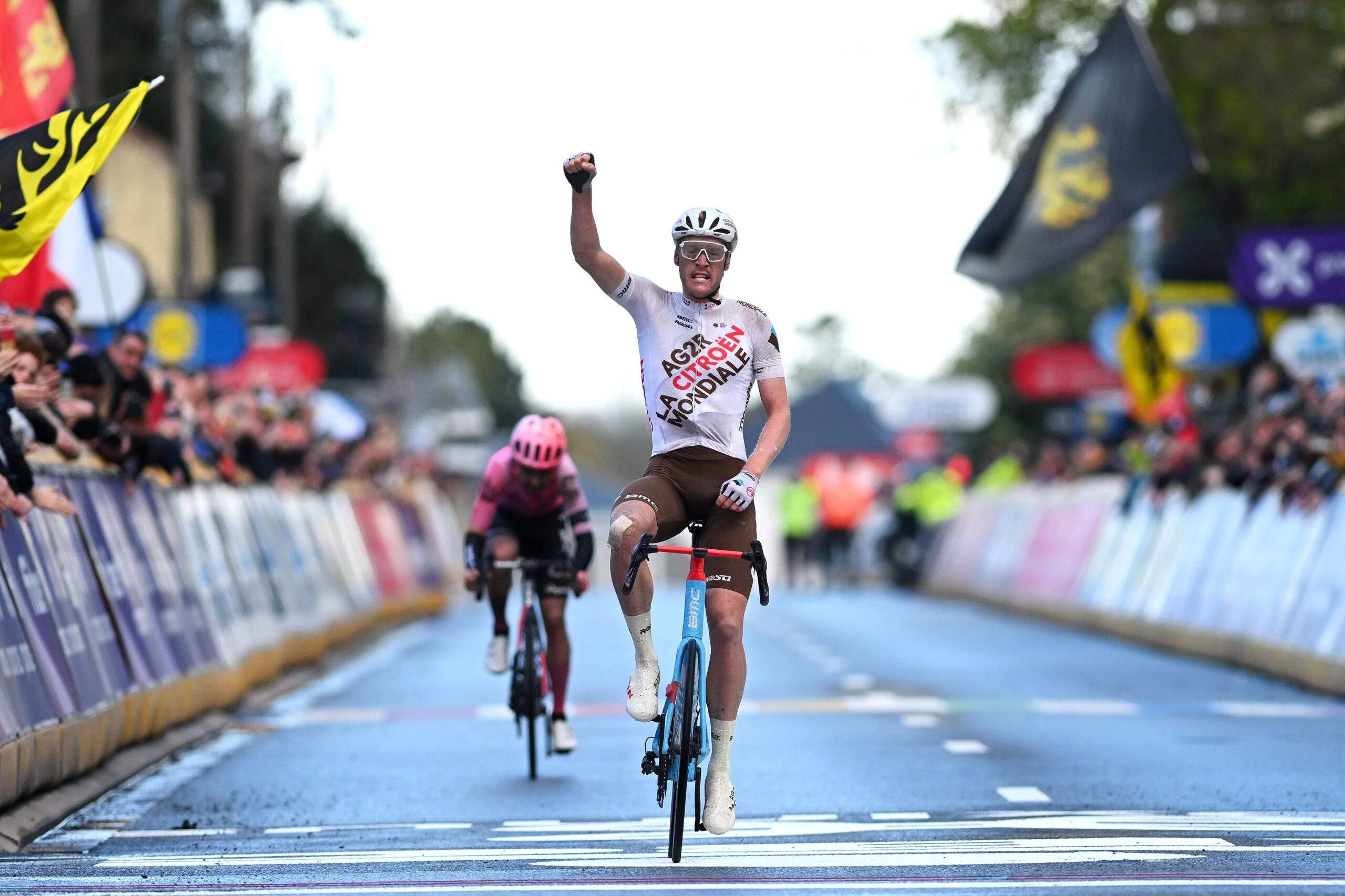 Dorian Godon se hizo con la victoria en la última gran clásica adoquinada de la primavera ciclista, la Flecha Brabante. El francés del AG2R batió en el mano a mano final al irlandés Ben Healy, su mayor rival en una jornada de mucha dureza que, al contrario que en ediciones previas, se decidió por un ataque lejano. Godon formó parte de un pequeño grupo que saltó del pelotón a 50 kilómetros de meta y que acabó jugándose la victoria. Tanto él como Healy se mostraron muy ofensivos en las diferentes colinas adoquinadas del circuito final, eliminando al resto de rivales, incluido Remi Cavagna, que finalmente solo pudo ser cuarto. El francés del Soudal fue superado en los últimos metros de carrera por Benoit Cosnefroy, que redondeó el día para el AG2R.