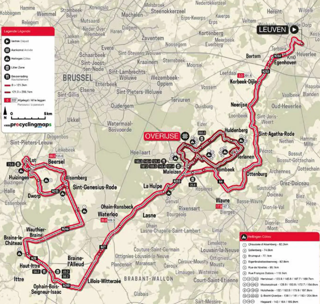 El próximo miércoles 12 abril se celebrará la 63ª edición de la Flecha Brabante (1.Pro) con un recorrido de 205 kilómetros que no presenta cambios respecto al año pasado. La salida estará situada en la ciudad belga de Lovaina, mientras la llegada en el municipio de Overijse. En esta última localidad darán cuatro vueltas a un circuito de 21,1 kilómetros que contará con diferentes cotas que muy probablemente romperán la carrera.