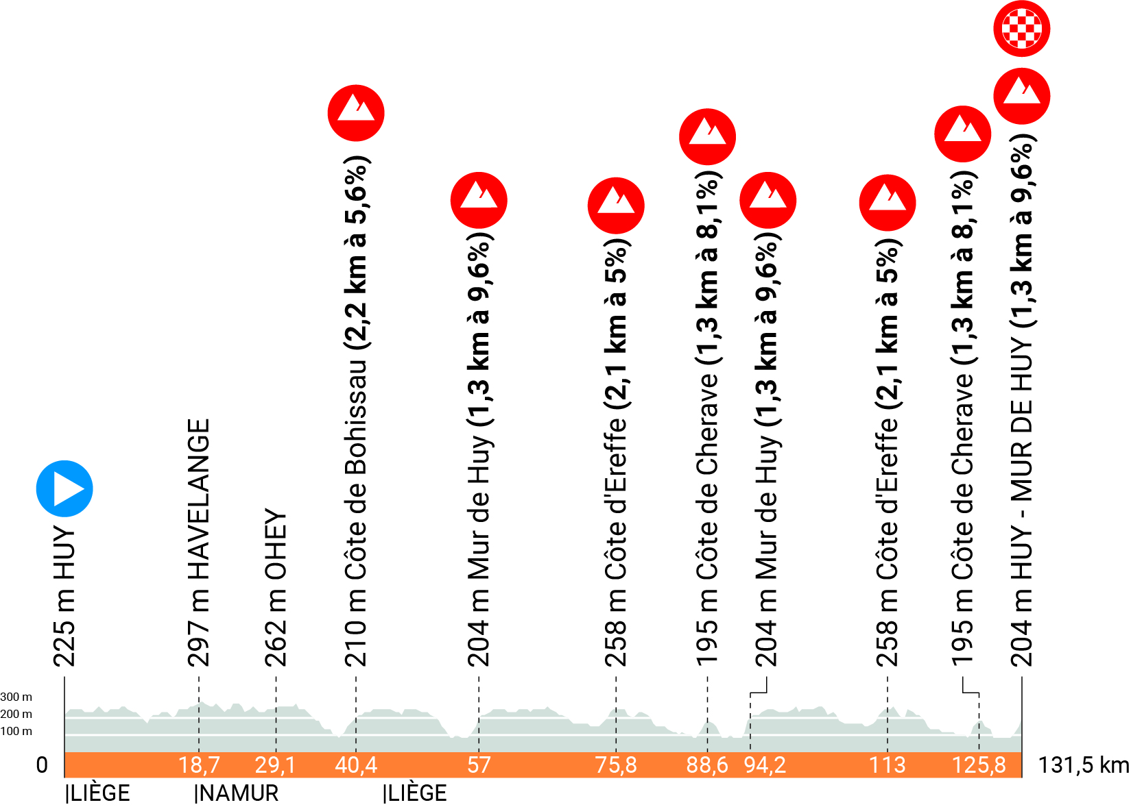 Sinuosa y accidentada como es tradición, la carrera intermedia del Tríptico de las Ardenas presenta un total de ocho cotas a lo largo de los 131,5 kilómetros en total, con las mayores dificultades concentradas en su totalidad en las tres vueltas locales del circuito final. 24 equipos acudirán a la cita, los 15 del WorldTour, dos presentes por su clasificación UCI de 2022, Ceratizit y Lifeplus, y siete invitaciones establecidas por ASO. El único español será Movistar.