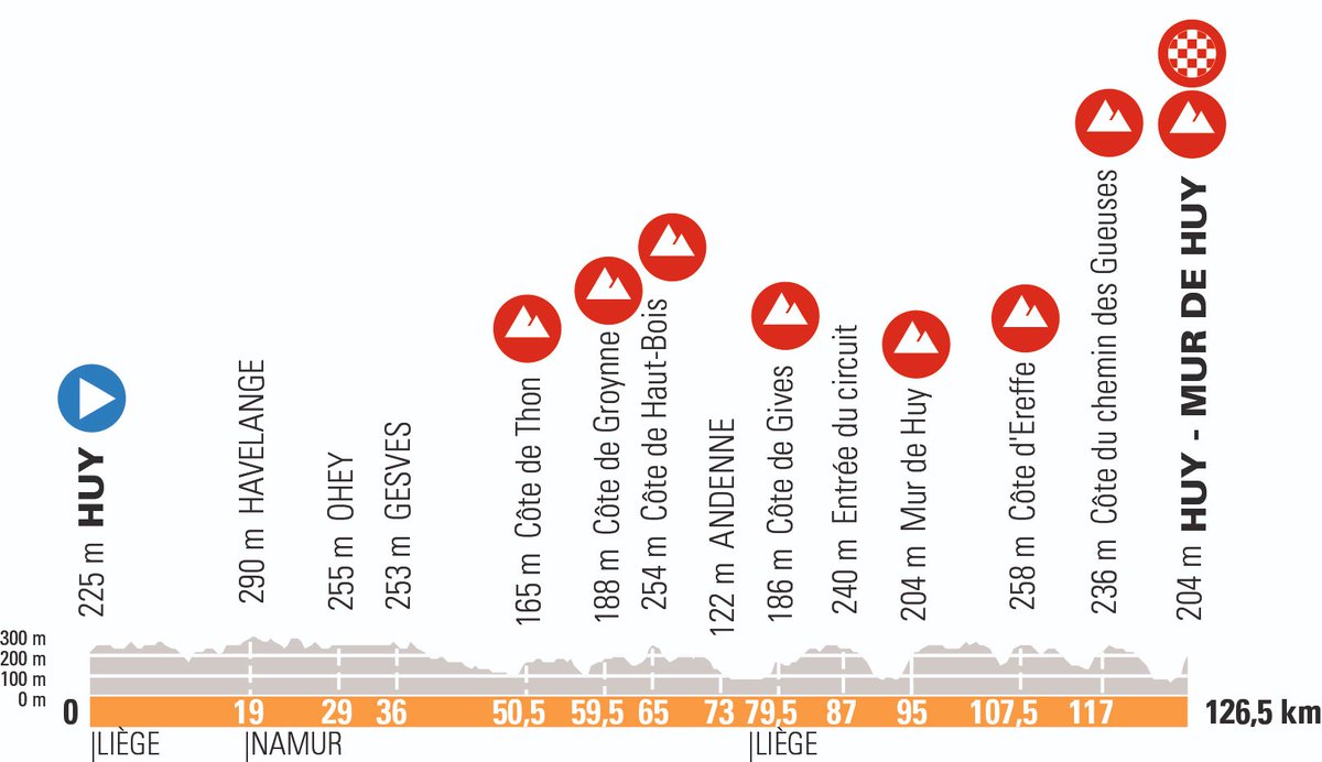 El trío transitó por el primer paso por Huy con algo más de medio minuto sobre un pelotón donde las rampas del que posteriormente sería el último kilómetro de carrera provocó una gran selección, dejando vivas sólo a las corredoras que, efectivamente, podrían pelear más tarde por el triunfo.