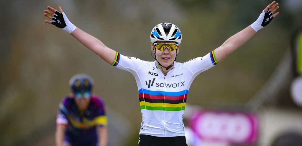 SD-Worx salió de ese asalto con superioridad numérica en el grupo perseguidor, que no conseguía reducir los 20 segundos que seguía defendiendo la Capitana América. Aceleró Van der Breggen justo después de que a nueve kilómetros para la línea de meta Mavi García, sabedora de lo mucho que le había costado mantenerse en el grupo, trató de sorprender desde lejos. Sin embargo, esa superioridad del equipo SD-Worx permitió a sus corredoras salir a por la española que, eso sí, obligó a la campeona del mundo a reaccionar en primera persona.