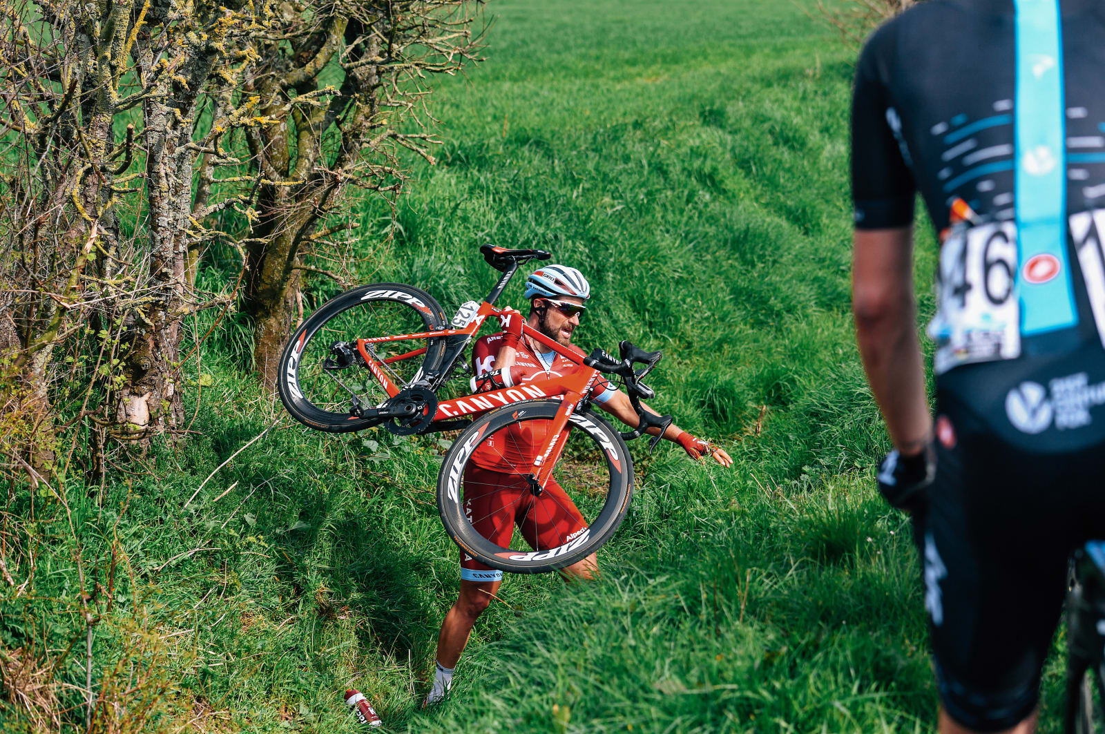 Pese a todo, ese grupo nunca conseguiría volver a enlazar y por delante ni Trentin ni Terpstra estuvieron atentos cuando Van Avermaet protagonizó su enésima apuesta. Esta vez sí, el belga se marchó. Sagan, al que todos se quedaron mirando, no respondió y sólo Keukeleire pudo unirse al campeón olímpico para lo que iba a ser una carrera de persecución de 15 kilómetros.
