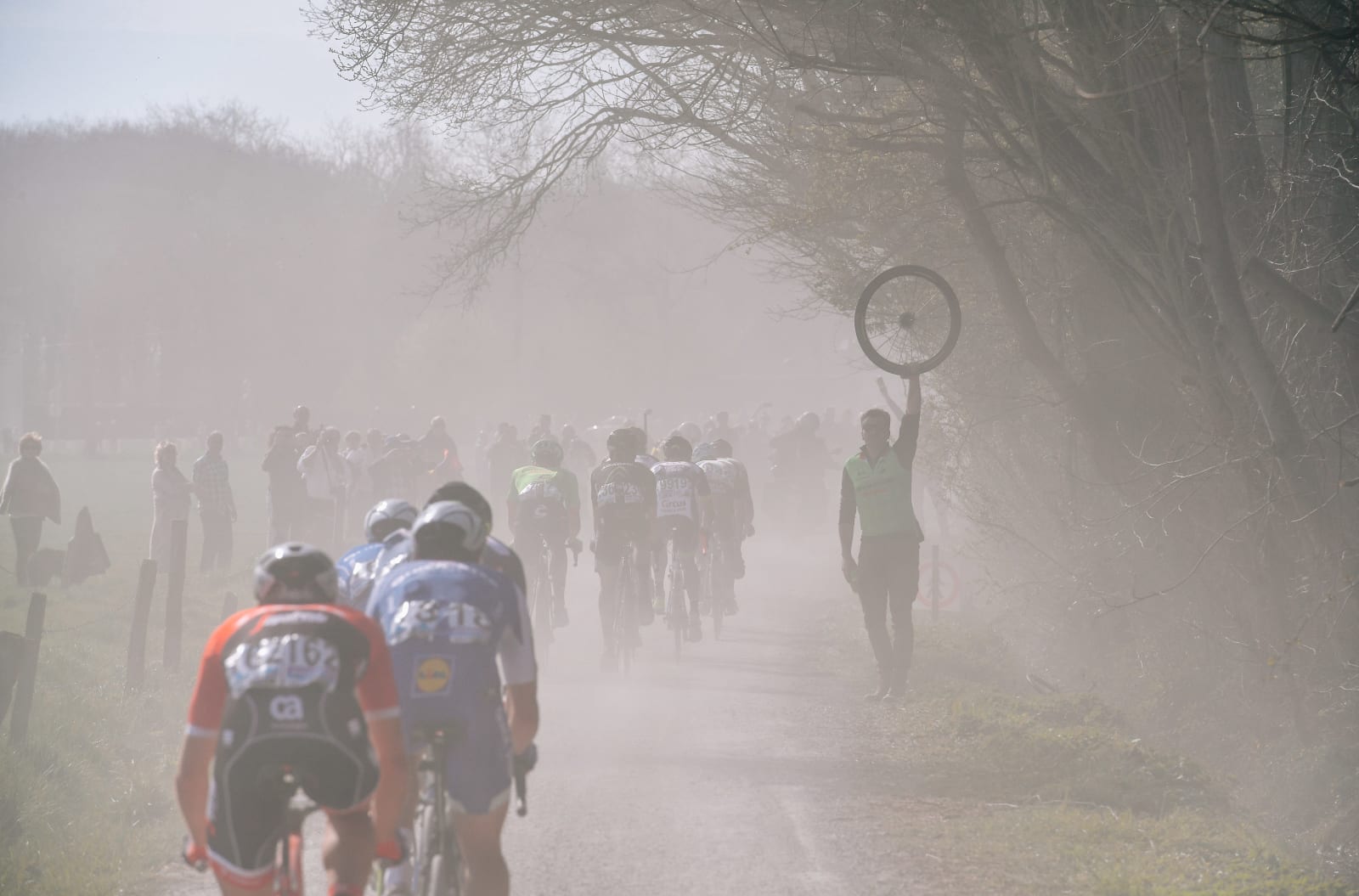 La Gante-Wevelgem, el ensayo general de cara a De Ronde y una de las pruebas más grandes del ciclismo de un día –de ahí que ese calificativo de ensayo sea bastante injusto– presentaba este año la gran novedad, muy criticada, de la inclusión de cuatro kilómetros de plugstreets, caminos no asfaltados que en un día soleado y seco como el de hoy hacen que los corredores protagonicen escenas, levantando polvo a su paso, más propias de otras carreras. Nadie sabía exactamente qué se podía esperar en esa corta pero peligrosa zona, pero finalmente la carrera volvió a decidirse en sus zonas más habituales, verbigracia, las subidas de la parte final de esos 249 kilómetros de recorrido.
