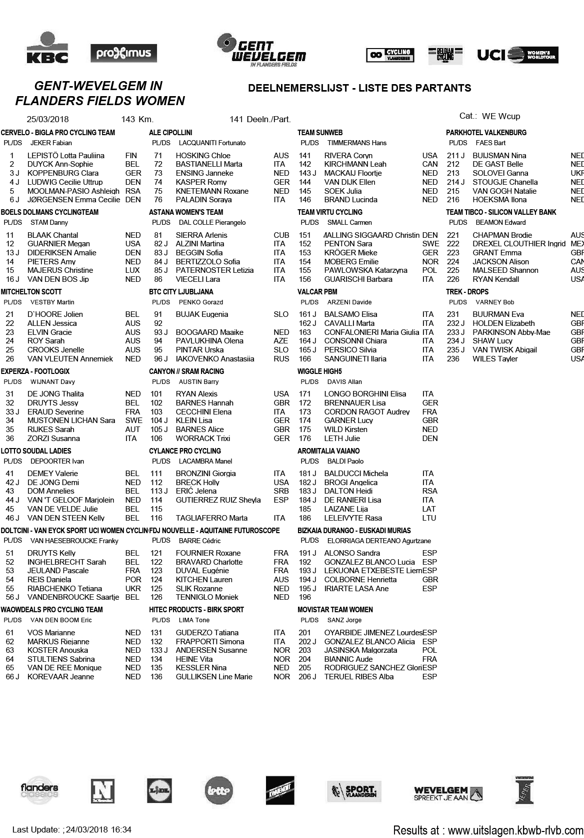 | KOREVAAR Jeanne | NED | WAOWDEALS PRO CYCLING TEAM | 22 | 65 | ||