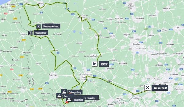 La arcoíris Lotte Kopecky se movió primero en el Baneberg y después en el exigente Kemmelberg donde se llevó detrás a Lorena Wiebes, Puck Pieterse, Pfeiffer Georgi, Silvia Persico, Elisa Balsamo y Elisa Longo Borghini, pero su falta de entendimiento no les condujo a nada. En el segundo paso Kopecky atacó con Wiebes y Georgi a las que se adjuntaron después Pieterse, Longo Borghini, Shirin van Anrooij, Karlijn Swinkels y Marlen Reusser, pero el SD Worx decidió no apostar por el corte.