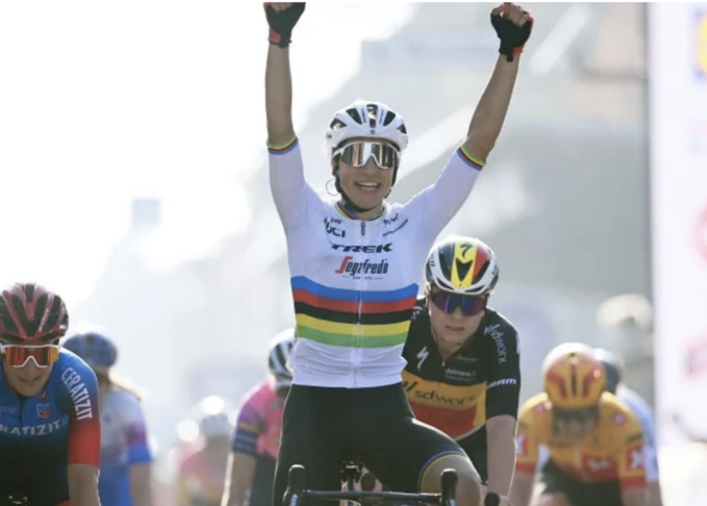 Triple consecutivo de Elisa Balsamo en ocho días en el World Tour. La campeona del mundo ha sido capaz de ganar en ese lapso de tiempo el Trofeo Alfredo Binda, la Brujas-De Panne y la Gante-Wevelgem. Y como no podía ser de otra forma la italiana lo hizo con su extrema punta de velocidad en un sprint masivo donde la dorsal 1 y neerlandesa Marianne Vos (Jumbo) y la también transalpina Maria Giulia Confalonieri (Ceratizit) completaron el podio. Obviamente la corredora del Trek es mucho más líder de la competición de la UCI.