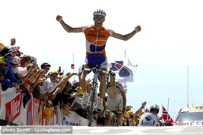 A menos de 500 metros, Schleck neutralizó a Pellizotti, cuando, casi simultáneamente, Martin, con su ritmo constante, agarraba a Garate justo en la pancarta en la que se concedían los puntos del Ventoux. La ascensión se hizo larguísima en sus últimos metros por el viento y el de Rabobank se protegía de la fuerza del viento, situándose al rebufo del rodador alemán. En la última curva, Gsrate arrancó a Martin y éste se vio imposibilitado para reaccionar. Con apenas unos metros de ventaja, el guipuzcoano certificaba una escapada exitosa e inscribía su nombre en una cumbre inigualable del ciclismo.