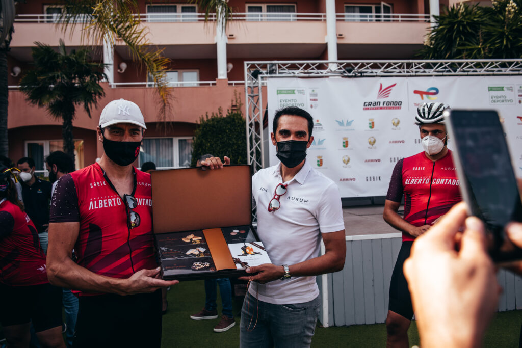 Con casi seis horas y rodeado de participantes ha llegado Alberto Contador. Satisfecho y contento “ha sido un día espectacular y para disfrutar de este territorio con los aficionados”, comentó el ganador de Giro, Tour y Vuelta. “Ha sido un desafío enorme y la nota es muy alta, esto significa que estamos acercándonos a la normalidad y que poco a poco la marcha crecerá”, ha asegurado.