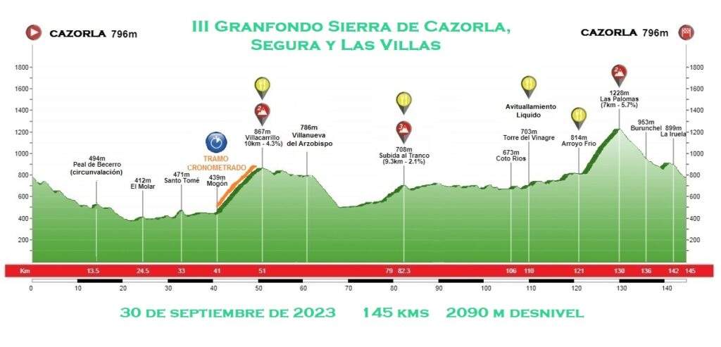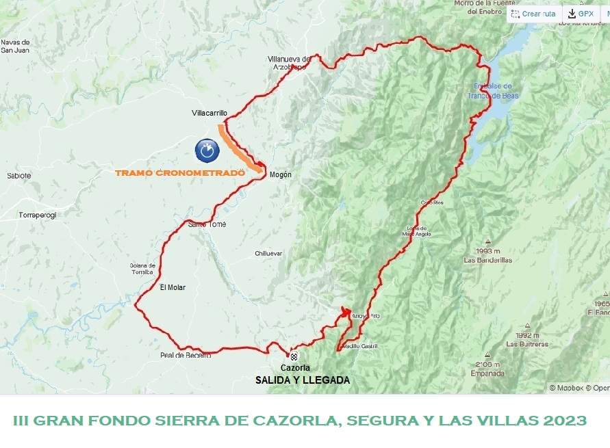 La cicloturista discurrirá por algunos de los parajes mas bellos del Parque Natural de Cazorla, Segura y Las Villas -el segundo Parque Natural más grande de Europa-, Agüacebas, Embalse del Tranco, Valle del Guadalquivir o el Puerto de las Palomas, con salida y llegada en Cazorla, considerado uno de los pueblos de montaña mas bonitos del sur de Europa, donde naturaleza, cultura y deporte, forma una simbiosis perfecta para la practica de deportes de montaña. Municipio turístico con una amplia oferta turística, gastronómica y hostelera.