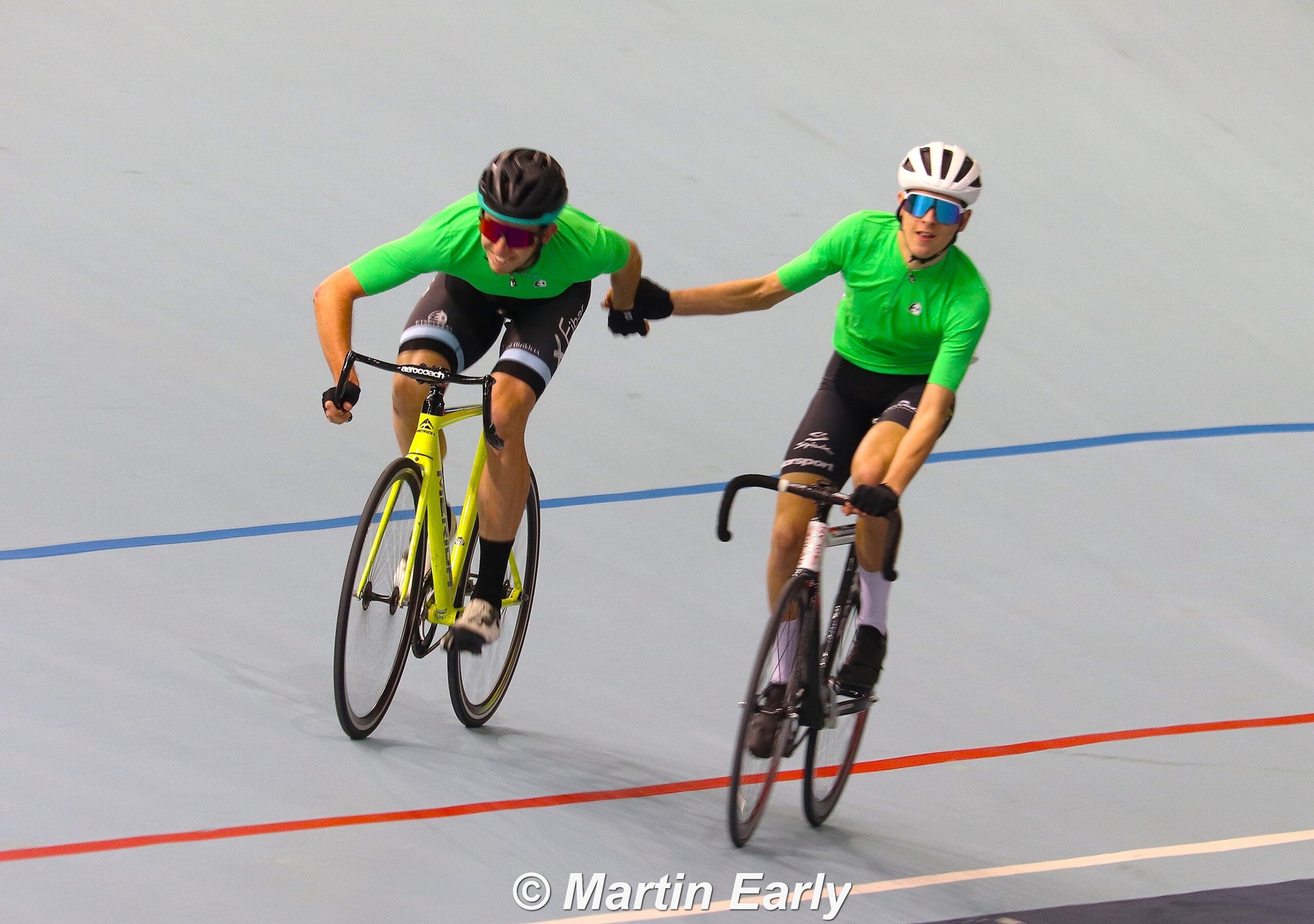 Por parte de los cadetes fue donde surgieron los problemas. Luca Martínez y Javier Monreal (Sakana-Villavés) se llevaban la primera madison por delante de los asturianos Hugo Delmiro y Samuel Valle. Pero una caída en la eliminación obligó a detener la prueba y reanudarla con sólo cuatro parejas, propiciando la victoria de la dupla del Principado.
