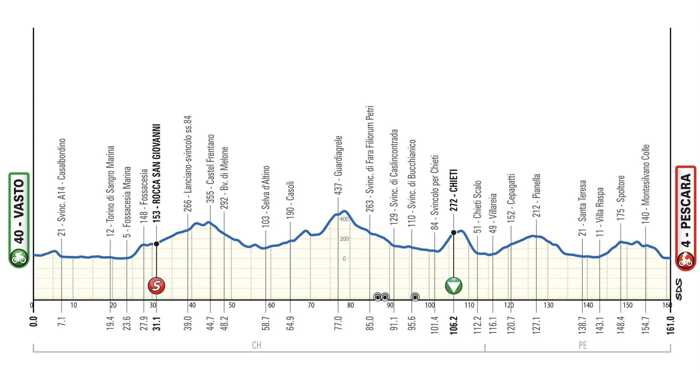 1ª: Martes 9 de abril. Vasto – Pescara (161 km)