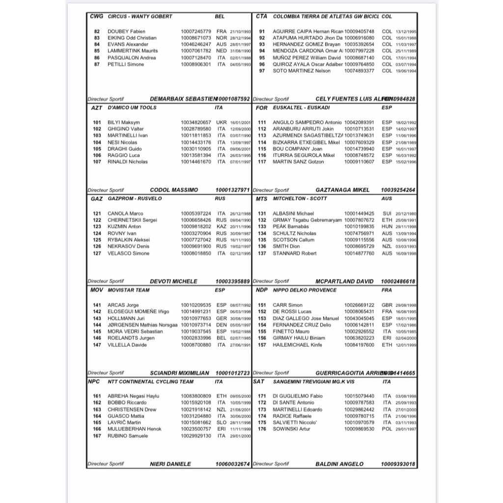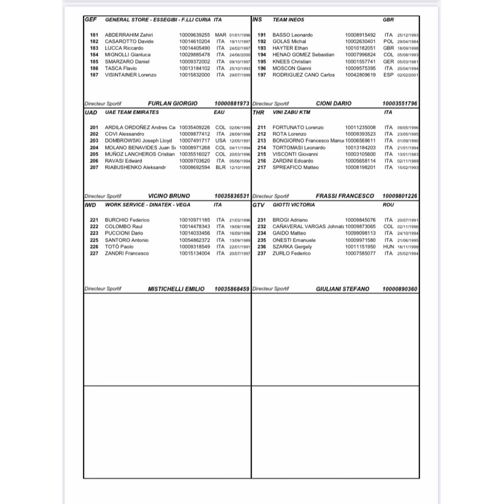 Los equipos WorldTour alinearán a algunos hombres que podrían hacerlo bien. Estamos pensando sobre todo en Enrico Battaglin (Bahrein-McLaren), capaz de resistir cuesta arriba y con una buena salida rápida en caso de la llegada de un pequeño grupo de pilotos para luchar por el éxito. Absolutamente a tener en cuenta a Aleksandr Riabushenko (UAE), que se presentó en buena forma en las últimas salidas, Simone Ravanelli (Androni-Sidermec) y Mikel Bizkarra (Euskaltel-Euskadi), respectivamente tercero y cuarto el año pasado en la meta en Génova. Atención también a la pareja azul de Gazprom – RusVelo con Marco Canola y Simone Velasco, al joven y prometedor eritreo Biniam Hailu Girmay (Nippo Delko One Provence) y a Simone Petilli (Circus Wanty Gobert).