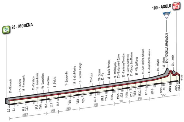 11ª: Miércoles 18 mayo. Modena-Asolo, 212 kms / Vídeo