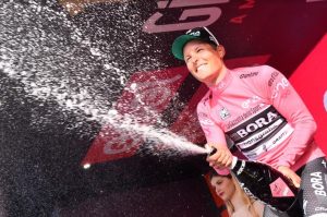 Atacó el austriaco en el momento adecuado y se plantó en la meta con la ventaja suficiente como para celebrar su triunfo y, por lo tanto, su liderato, durante los últimos 50 metros mientras que por detrás el resto de los favoritos se entregaban a un último esfuerzo infructuoso por evitar el pleno de los corredores del Bora-Hansgrohe que de forma más o menos intencionada han conseguido demostrar, en esta primera etapa del Giro del centenario, que son algo más que sólo Peter Sagan.