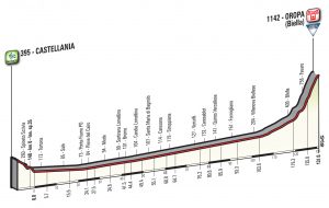 Una vípera de una etapa unipuerto de solo 131 kilómetros con final en el santuario de Oropa y otro duelo entre el neerlandés Tom Dumoulin y el colombiano Nairo Quintana que tratará de seguir la racha colombiana y enjugar su desventaja de 2:23. El resto querrán colarse en la fiesta.