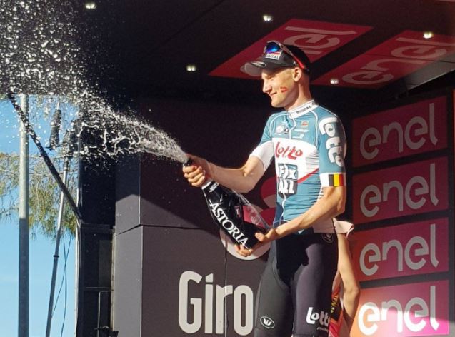 Tim Wellens: «Tuve la suerte de tener compañeros fuertes de mi lado y pude comenzar la escalada final con cierta ventaja y esperar a los últimos 200 metros para atacar. Estoy muy contento de ganar tan pronto en este Giro».