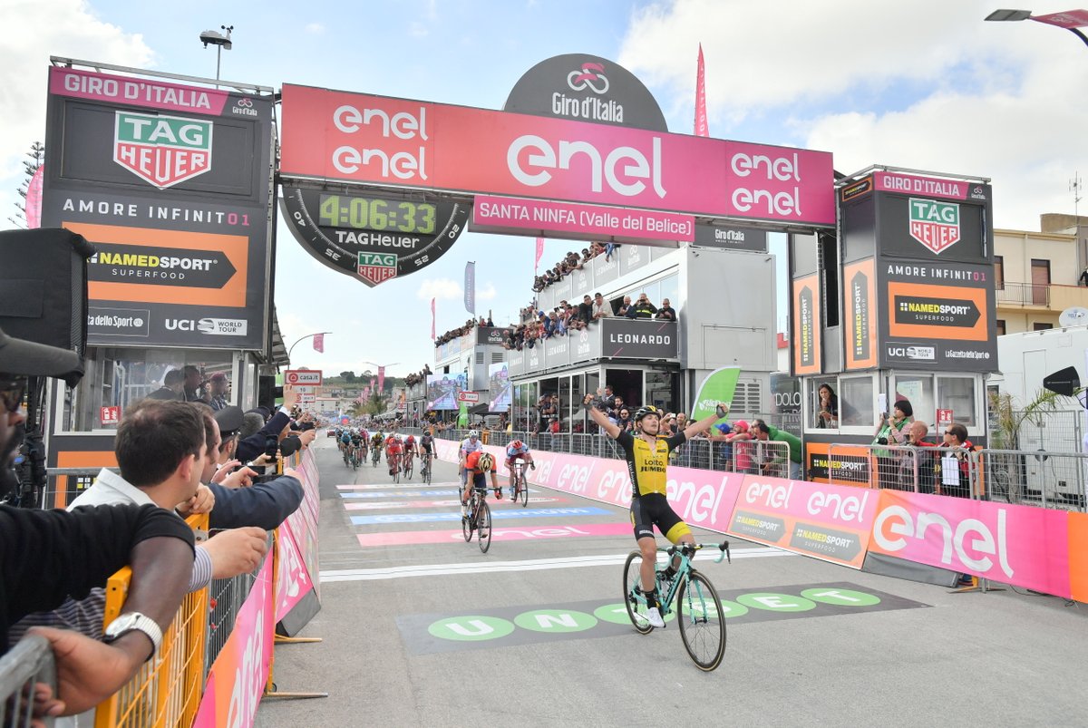 Pero Visco no contaba con la aparición, casi de la nada, de un Battaglin que no sólo cerró el hueco sino que, ya en los metros finales, tuvo la fortaleza suficiente para salir de la aspiración de su compatriota y levantar los brazos, triunfal, en esa meta de Santa Ninfa.