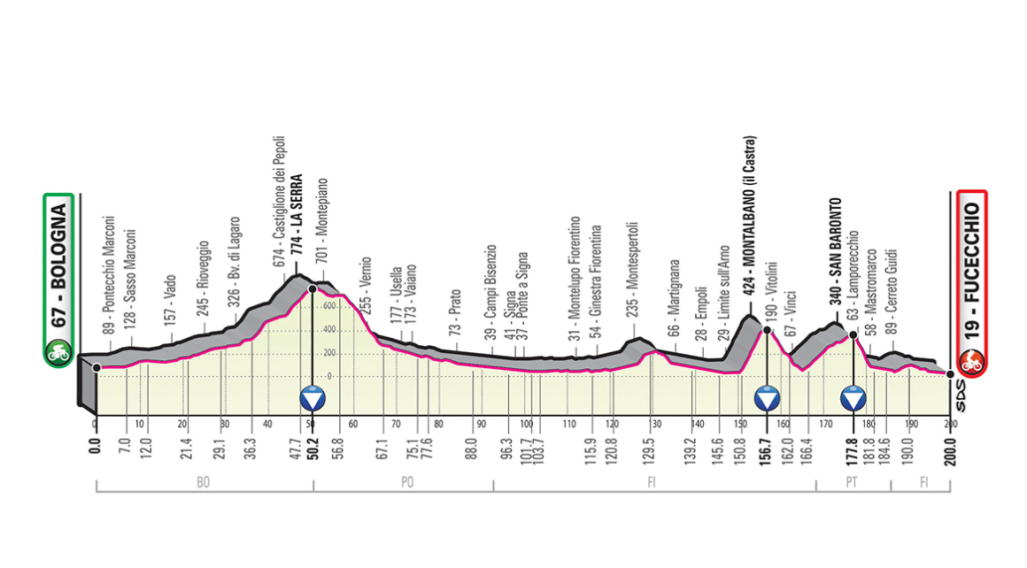 Próxima etapa. 2ª etapa. Domingo 12 mayo: Bolonia-Fucecchio, 200 kms