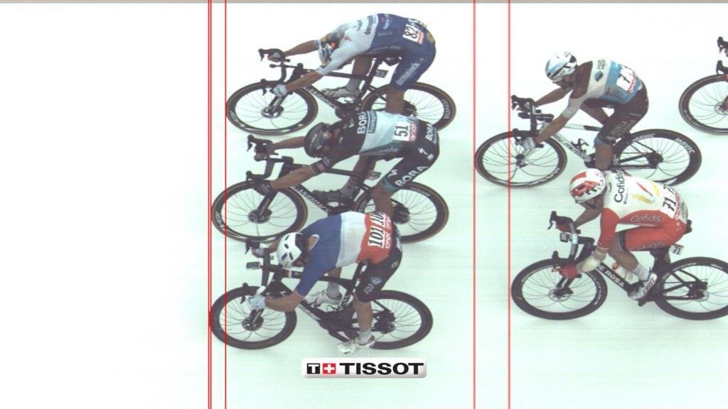 La neutralización definitiva se produjo bajo la pancarta de los últimos 20 kilómetros para la línea de meta. Allí comenzó una nueva batalla, casi una nueva etapa. Groupama-FDJ, con su Arnaud Démare muy bien protegido, colocándose junto al tren de Bora-hansgrohe. La velocidad, y de ello era fiel reflejo el rostro de esfuerzo de cada uno de los lanzadores que se iban turnando para comer viento, era enorme. Sobre todo, para tratar de evitar que Fernando Gaviria (UAE-Emirates) y Álvaro Hodeg (Deceuninck-Quick Step), dos antiguos compañeros de equipo, volvieran a contactar con la cola del grupo y se sumaran, aunque ya mermados por la persecución, a la fiesta.