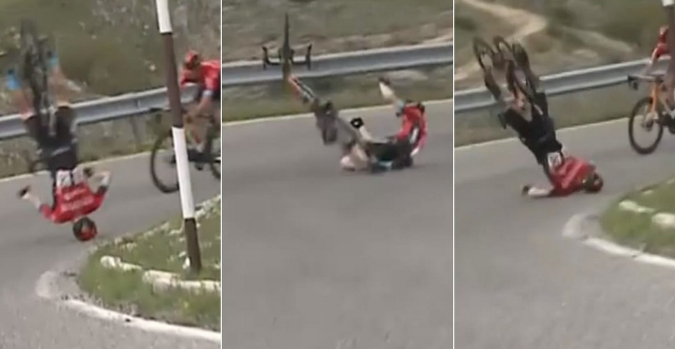 21 mayo. Matej Mohorič (Bahrain) se estrelló mientras descendía el Passo Godi en la novena etapa del Giro de Italia, lo que le obligó a abandonar el Giro en base a los protocolos de conmoción cerebral del equipo. Mohorič está sano y escapó de la caída con una leve conmoción cerebral y contusiones menores. Mohorič comentó sobre el accidente que «entramos en la curva al límite a gran velocidad. Mi trazada no era perfecta, ya que no tomé toda la carretera. Tenía previsto adelantar a Gino en la salida y ponerme delante. La curva me sorprendió y estaba más cerca de lo esperado. Perdí tracción en la rueda trasera debido a la alta velocidad. Pude alcanzar a la moto, pero al hacerlo, estaba más cerca de la curva por mi izquierda. Normalmente, no me hubiera estrellado, pero debido al bordillo, lo he cortado con el pedal izquierdo, lo que es evidente por los daños. Debido a ello, mi bicicleta se fue completamente de lado, y golpeé el bordillo con la rueda delantera. Por suerte, la bicicleta absorbió toda la energía al partirse la horquilla, por lo que he salido de esta caída con sólo unas pequeñas contusiones y una ligera conmoción cerebral. Después de la caída, sentí un poco de dolor y adrenalina, pero me siento bien y volveré a entrenar en una semana después de someterme al protocolo de conmoción cerebral de la UCI. Estas caídas siempre demuestran la importancia de llevar el casco. Me gustaría dar las gracias a nuestro socio Rudy Project, ya que el casco me salvó la vida«. Mohorič llegó a su casa el miércoles y volverá a subirse a la bicicleta en una semana.