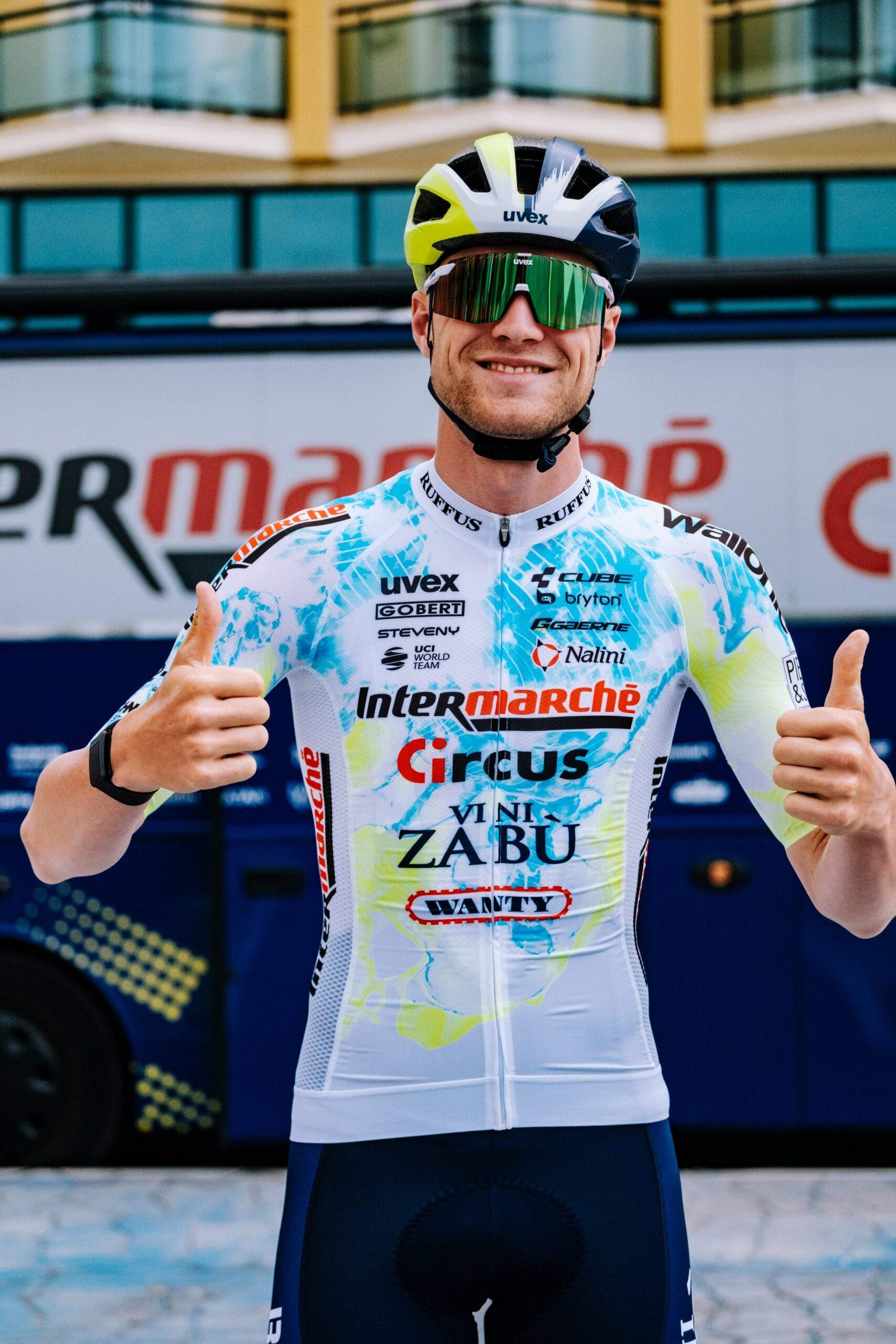 5 mayo. El equipo Intermarché es otro de los equipos que se suma a cambiar su maillot de cara a la 106ª edición del Giro de Italia. En homenaje al socio siciliano Vini Zabù, los ocho corredores del equipo llevarán una túnica hecha excepcionalmente por Nalini. La nueva prenda toma prestada una paleta de colores claros, que reflejan los cielos azules claros y el suelo fértil de Italia. El logotipo de la rama siciliana del grupo Fantini aparece entre los compañeros de título en el pecho de los ocho ciclistas, además de su ubicación habitual en el lado izquierdo de los pantalones cortos.