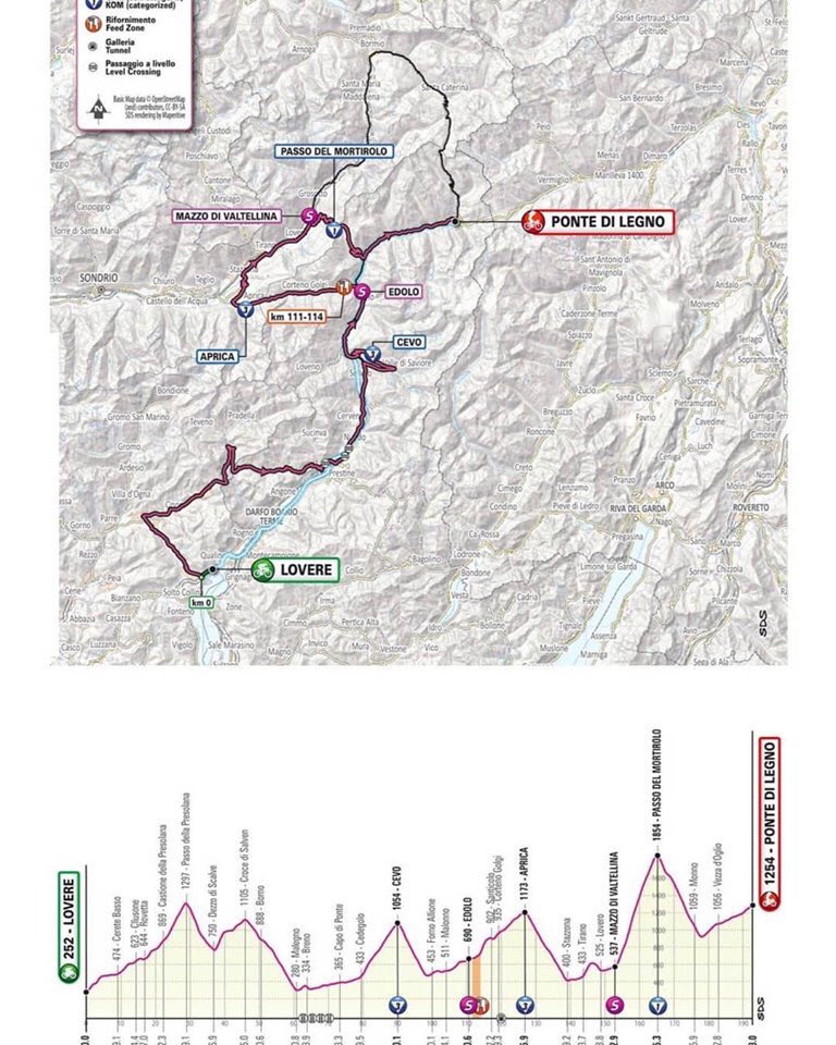 Vegni añadió que «desde la ruta original, antes de Edolo, hemos incluido la dura subida de Cevo. Luego regresaremos a Edolo, tendremos Aprica por su parte más difícil. Después a Mazzo, donde se ascenderá Mortirolo y se llegará a Ponte di Legno, evitando el doble paso. La etapa medirá aproximadamente 194 km con un desnivel acumulado de 4.800 metros».