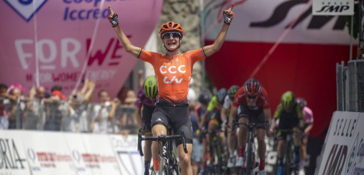El pelotón finalmente dio caza a las dos fugadas con apenas seis kilómetros por delante, momento en el que todo quedó visto para una sentencia que finalmente dictó Marianne Vos (CCC-Liv), imponiéndose al sprint en la línea de meta de Viu’ después de tener que neutralizar un potentísimo cambio de ritmo a cargo de Tayler Wiles (Trek-Segafredo) en los últimos 500 metros.