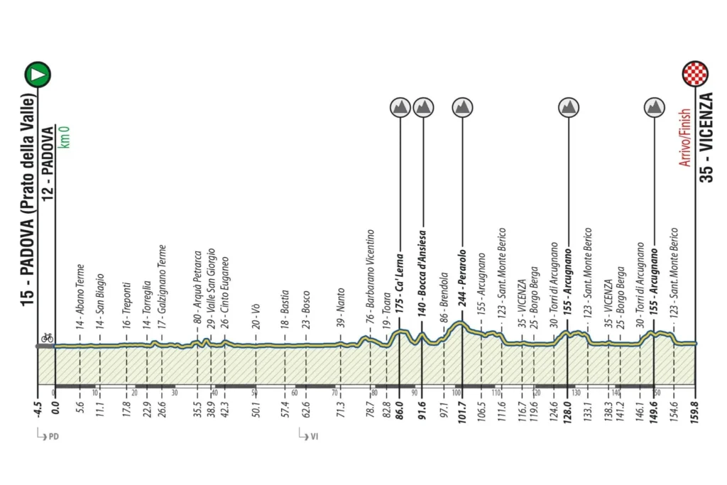 En la bajada todos ellos relevaron, incluso el corredor del Total que había estado en la fuga inicial, por lo que la victoria estaba entre ellos. Ya en las calles de Vicenza, De Marchi atacó poco antes del paso bajo la pancarta del último kilómetro. Trentin reaccionó bien, pero Rochas fue el siguiente en probar al sprinter del UAE. No se inquietó el italiano, cogió también su rueda y, en la recta final, lanzó la llegada para conseguir un triunfo con mucha contundencia.