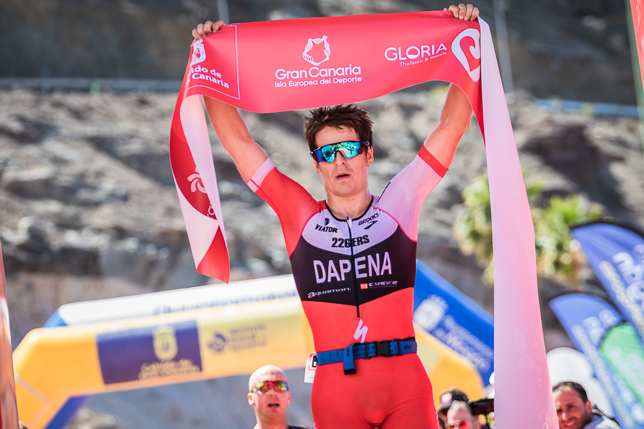 El vigente campeón de triatlón de larga distancia de España, Pablo Dapena se alzó hoy, sábado 21 de abril, como ganador de la tercera edición del Gloria Challenge Mogán Gran Canaria 2018 con una marca de 4 horas, 0 minutos y 25 segundos. La categoría femenina de las triatletas profesionales la dominó la holandesa Yvonne Van Vlerken con un tiempo de marca de 4 horas, 38 minutos y 41 segundos.