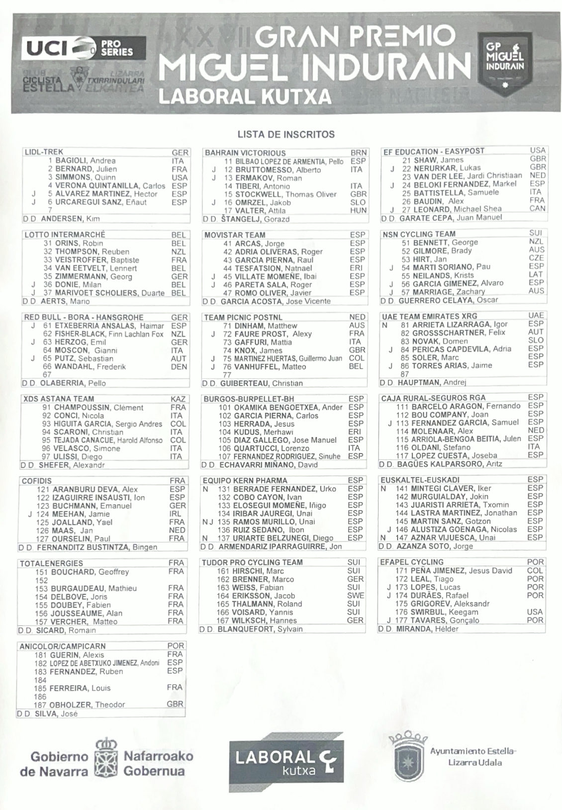 Los organizadores han anunciado los equipos que participarán en el GP Miguel Indurain 2026. La prueba española, de categoría UCI 1.Pro, está prevista para el sábado 4 de abril y reunirá en la salida a corredores de primer nivel, dada la calidad de los equipos que han aceptado la invitación del Club Ciclista Estella, la asociación que organiza la carrera dedicada al gran campeón navarro.