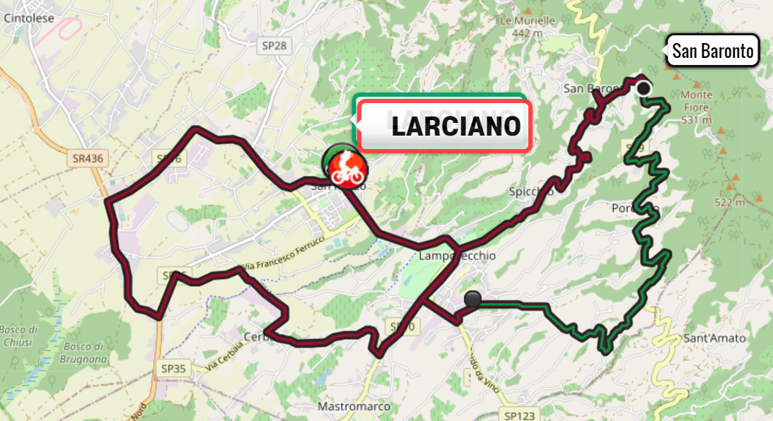 Aunque parecía que el cambiante recorrido de esta edición 44º del GP Larciano haría fructificar las diferencias en el pelotón, éstas no llegaron hasta los kilómetros finales. La prueba, que salió y llegó al municipio italiano de Larciano, tuvo como una primera fuga a tres hombres: Michael Belleri, Jozsef Malnsasi y Giulio Masotto. Más tarde el protagonismo pasó a manos también de Matteo Freddi y Connor Sens, que se instalaron junto al grupo cabecero. Llegaron a aventajar al pelotón en más de dos minutos.