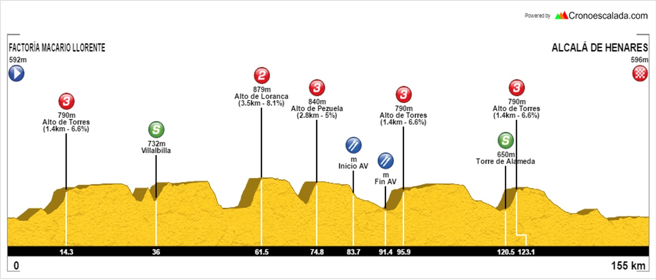 Los mejores corredores de la categoría serán de la partida el próximo 5 de Mayo a partir de las 9.30 horas con un recorrido atractivo, ideal para buscar las fugas y generar emboscadas, no siendo para nada claro que se vaya a llegar a la meta de la calle Libreros en un sprint masivo. El terreno del Corredor del Henares no es fácil, y los altos de Loranca, Pezuela y Torres de la Alameda serán los filtros que deberán seleccionar una carrera en la que también la climatología podría jugar un papel decisivo en el desenlace final.
