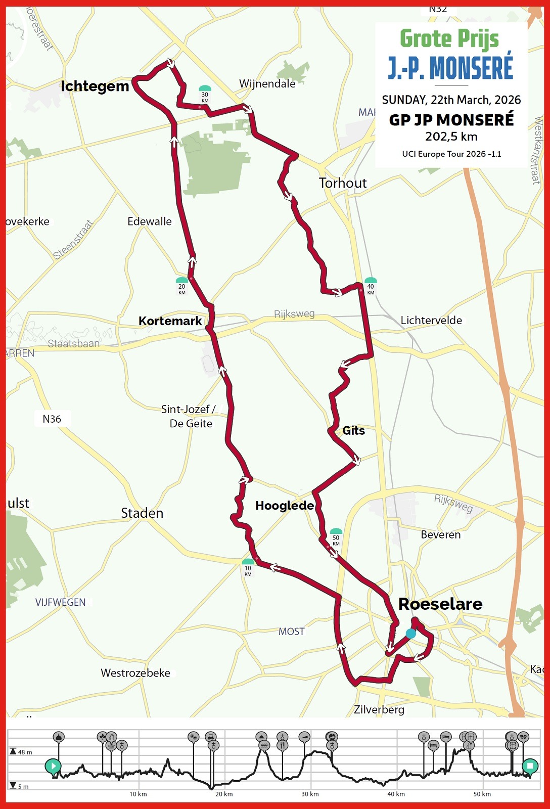 El GP Jean-Pierre Monseré (1.1 UCI) se disputará el domingo 22 de marzo sobre un recorrido de 202 kilómetros en modo circuito en torno a la ciudad de Roeselare. Participarán un total de 24 equipos en la clásica belga: 6 WorldTeams, 7 ProTeams y 11 Continentales, siendo el Caja Rural el único representante español. El francés Alexys Brunel es el vigente campeón.