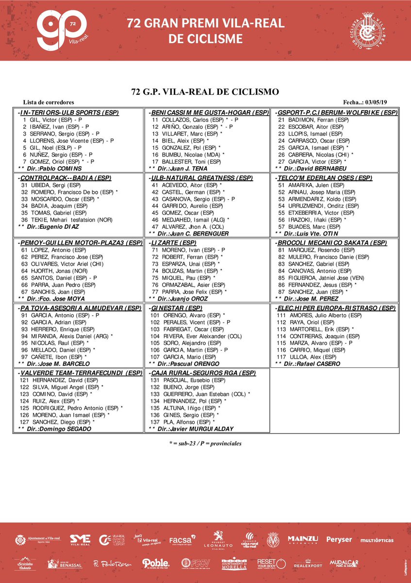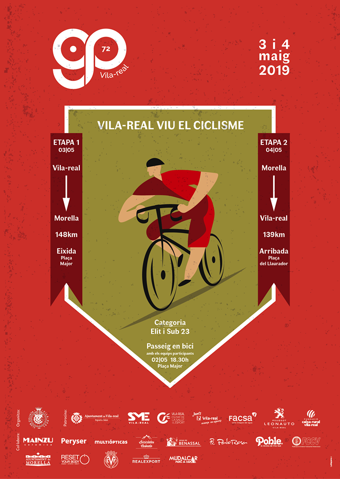 Vila-real, 29 de abril de 2019. El Gran Premio de ciclismo Vila-real-Morella celebra su 72 edición con 14 equipos de toda España que participarán en esta prueba única en todo el país. Llegados desde puntos como el País Vasco, Navarra o Andalucía, entre otros puntos, recorrerán este viernes 3 de mayo los 148 kilómetros que separan Vila-real de Morella.
