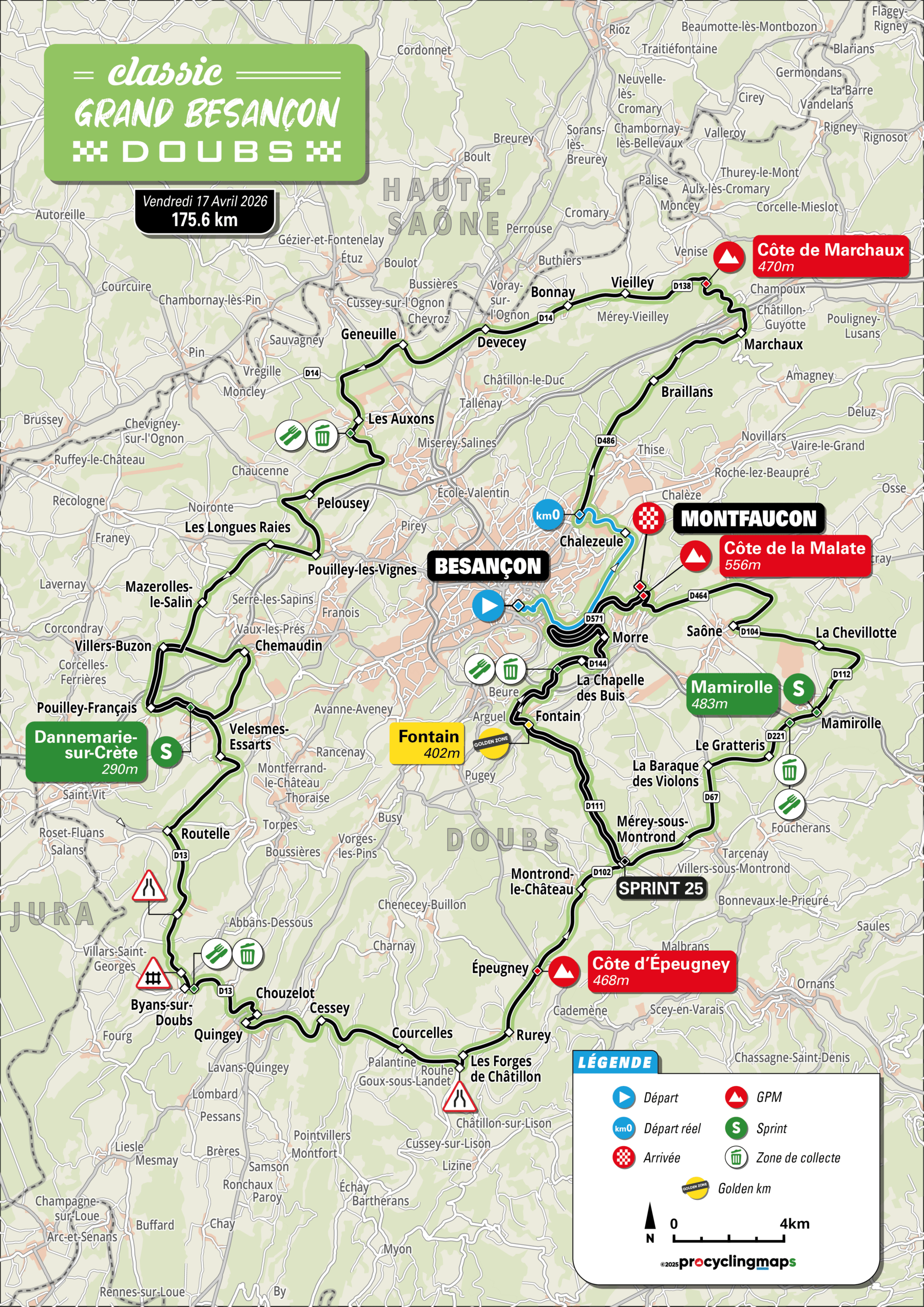 La Classic Grand Besançon Doubs calienta motores para su sexta edición, que se celebrará el próximo viernes 17 de abril. El pelotón se enfrentará a un exigente recorrido de 175,6 kilómetros con inicio en Besançon y final en Montfaucon, una cita ya consolidada en el calendario francés por su perfil para escaladores. El gran interrogante de esta edición será descubrir quién logra suceder en el trono a Guillaume Martin, último vencedor de la prueba.
