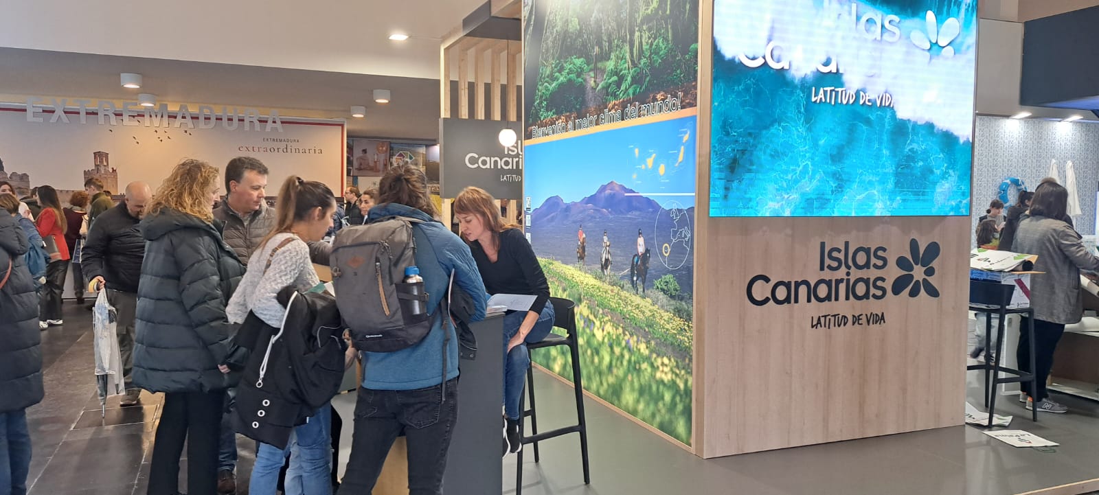 Firmes en el compromiso con la sostenibilidad, en esta feria se contó con pantallas táctiles donde estuvo disponible la app interactiva en la que los visitantes accedieron a la información sobre los distintos recursos turísticos y la oferta alojativa con la que cuenta la isla de Gran Canaria.