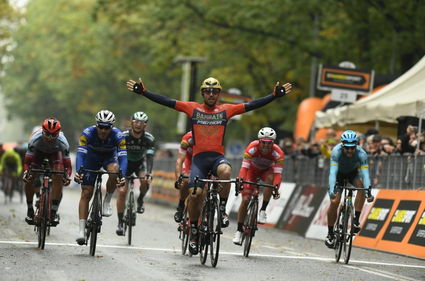 Bajo la insistente lluvia de Stupinigi, en el final de la 101ª edición del Gran Piemonte, ha conseguido la victoria el que era el máximo favorito en la previa, el sprinter del Bahrain Merida, Sonny Colbrelli, en una volata lanzada desde lejos como acostumbra el velocista italiano. Segundo fue el francés del Quick Step Floors Florian Senechal y en tercera posición Davide Ballerini del Androni. Colbrelli consigue la cuarta victoria de la temporada y la 26ª para el equipo asiático.