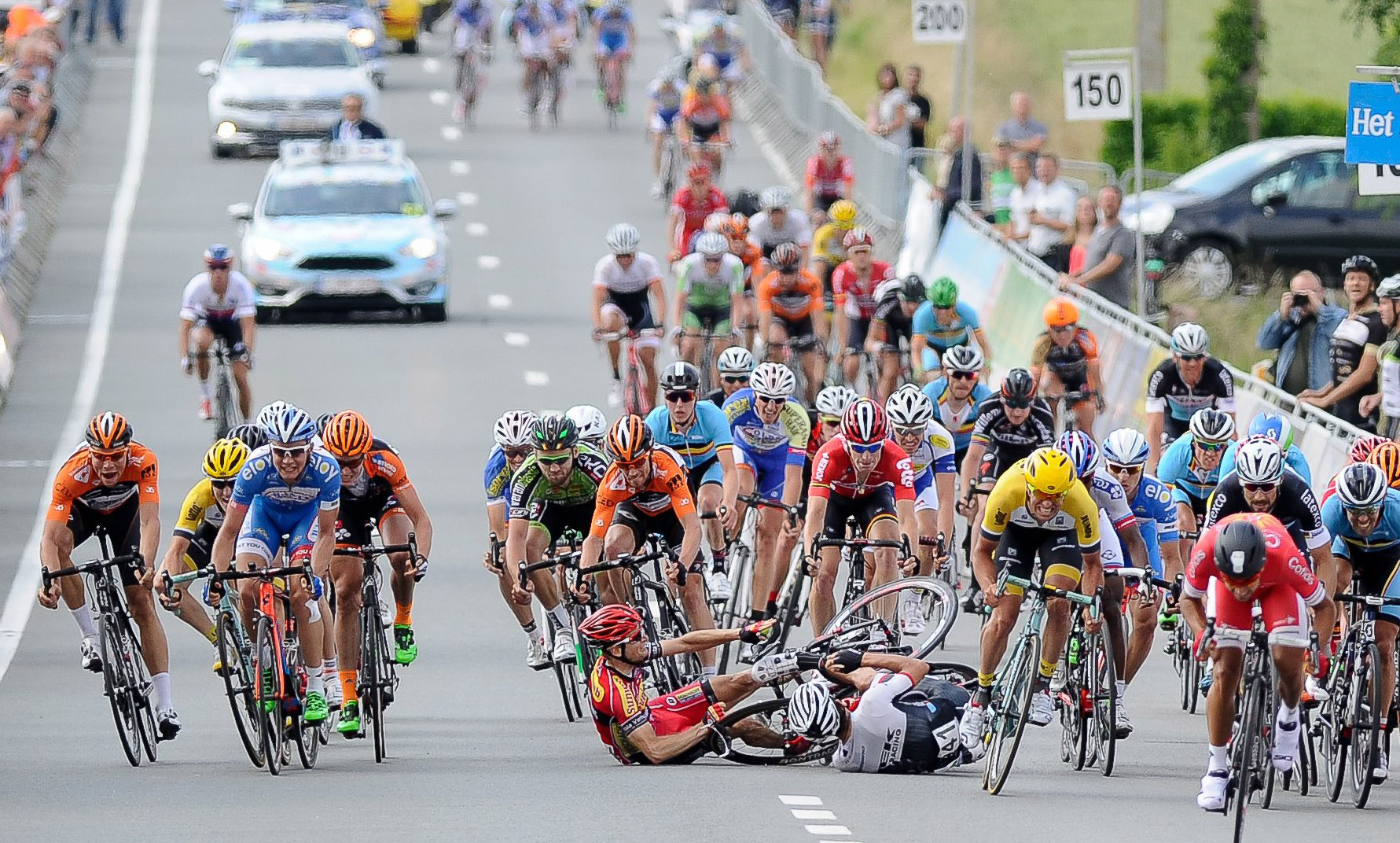 La carrera vivió una caída en el sprint final que no tuvo primeras consecuencias importantes para sus protagonistas, entre ellos Kevin Pauwels (Sunweb) y Eugenio Alafaci del Trek estadounidense.