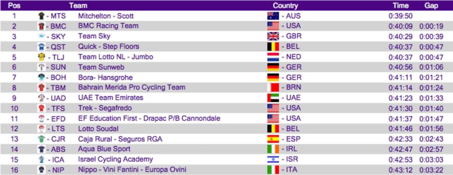 1ª: Bahrain-Merida / 2ª: Mitchelton-Scott /