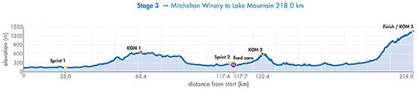 Los siete consiguieron una ventaja máxima de cuatro minutos antes de que la prueba tuviera que ser neutralizada a causa de una modificación del recorrido obligada por obras en la carretera. Tras la reanudación fueron Nathan Earle (Israel Cycling Academy) y James Whelan (KordaMentha Real Estate-Australian National Team) los que consiguieron dejar atrás al pelotón, pero su aventura tampoco llegaría a buen puerto y sería finalmente el ya mencionado Pedersen el que se llevara el triunfo mientras que Norman Hansen se mantiene en el liderato.