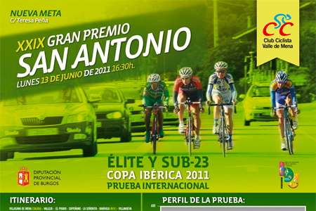 SAN ANTONIO CARTEL RECEl Gran Premio San Antonio Villasana de Mena, celebrado en esta misma localidad burgalesa, ha sido finalmente para el corredor del equipo Lizarte Higinio Fernández, que superó al sprint a Julián Barrientos (Baqué) y a Eddy Valdespino (Open Ibaigane).