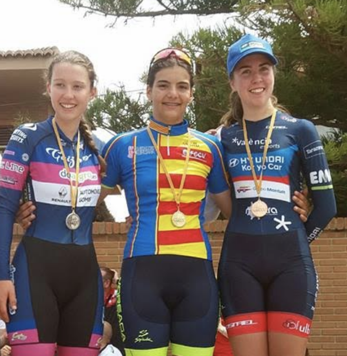 Las chicas del Hyundai Koryo Car-Dstrel estuvieron presentes, el pasado sábado 9 de junio en Lliria, en los podios del Campeonato de la Comunitat Valenciana contrarreloj individual en las categorías cadete, junior y sub-23.