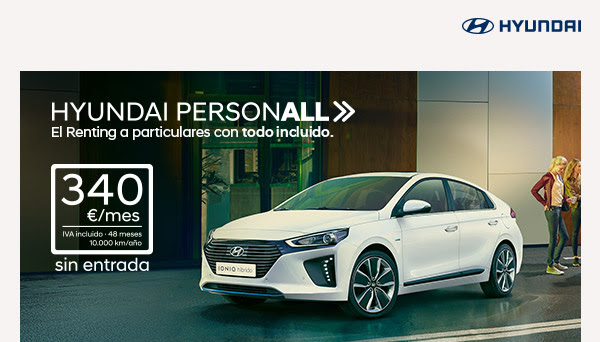 Disfruta de tu Ioniq híbrido con Hyundai Personall por tan solo 340€ al mes, sin entrada y con todo incluido.
