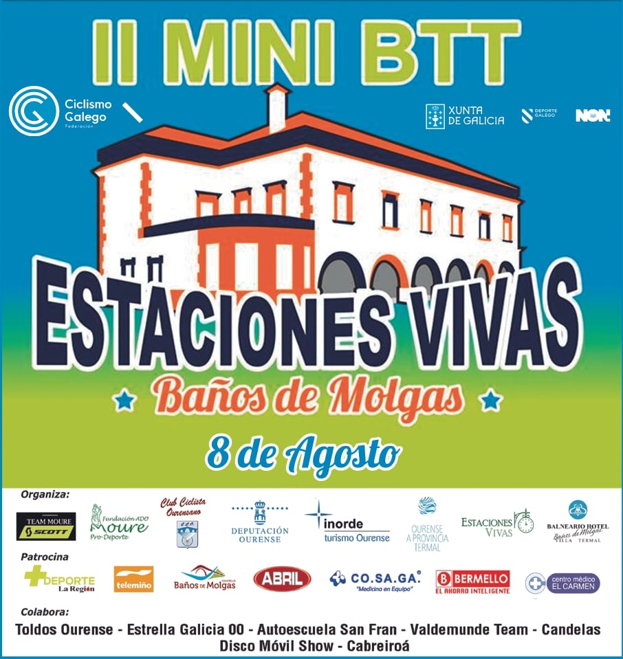 El pasado domingo, 8 de agosto, se celebró la segunda edición del Mini BTT Estaciones Vivas en la localidad de Baños de Molgas (Ourense) para las categorías promesa femenina, promesa B, promesa A, principiante femenina, principiante B, principiante A, infantil femenina, infantil, benjamín femenina, benjamín, alevín femenina, alevín B y alevín A.