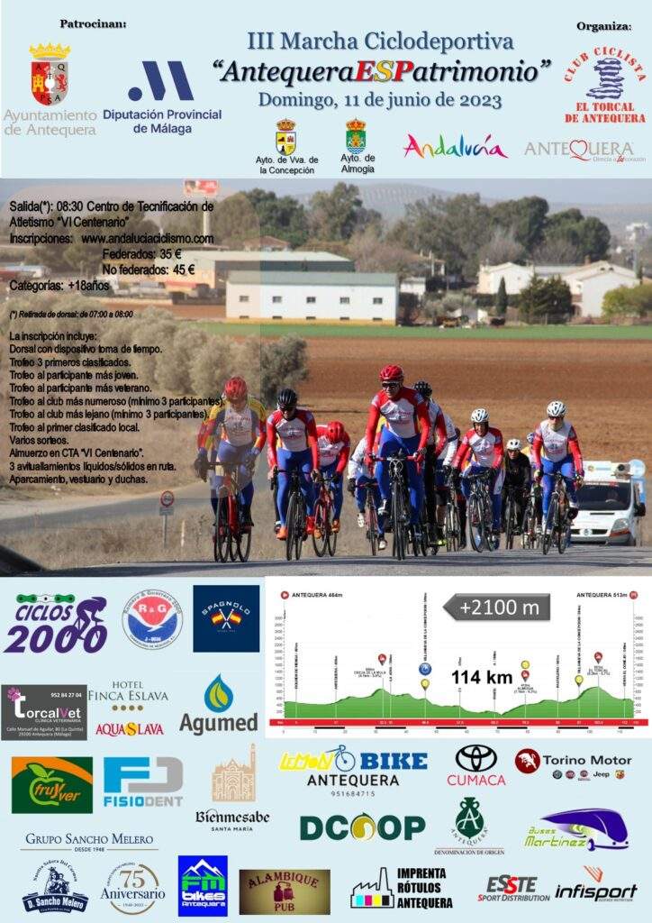 Después de varios años de ausencia, este 2023 regresa la que será la 3ª Marcha Ciclodeportiva «Antequera es Patrimonio», que tendrá lugar el próximo 11 de junio.