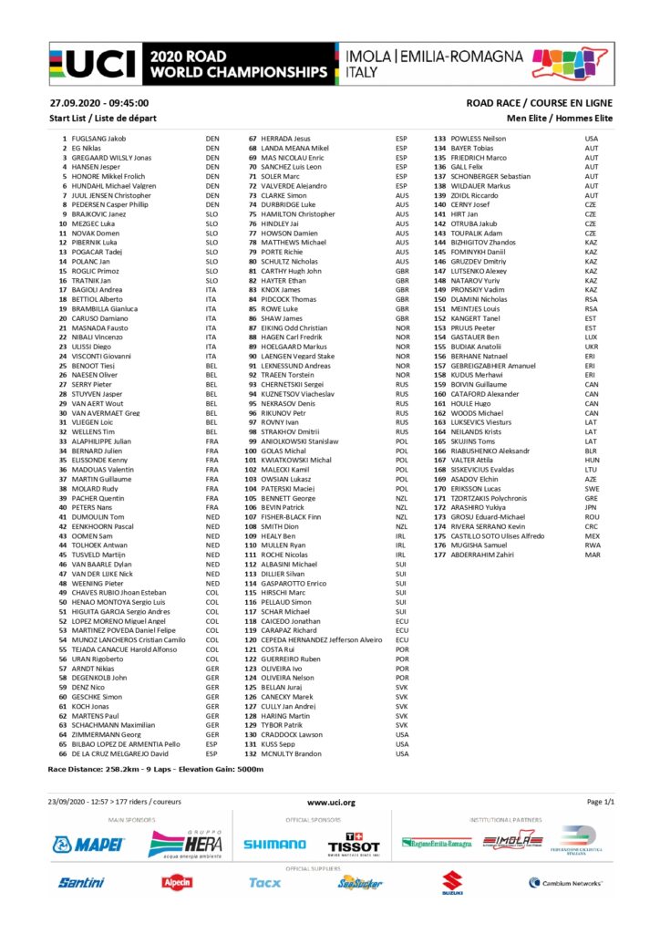 Durante toda la semana, la Selección Española ha permanecido concentrada en Imola con la intención de descansar y recuperar tras el Tour de Francia, conociendo además cada rincón del circuito. El seleccionador nacional, Pascual Momparler, ha señalado que “los chicos después del Tour han recuperado y han entrenado bien. Va a ser una carrera durísima, en la que tenemos que estar las 7 horas súper concentrados. Sobre todo, mentalmente tenemos que estar bien. Una vez superados los 3.000 metros de desnivel tenemos que estar delante, dar la cara y demostrar el equipo que somos”, asegura Momparler.
